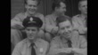 POV through barred window of prison yard at Rahway State Prison (later East Jersey State Prison) / damage to side of locker unit in inmate dormitory / VS journalist and prison official examine piece of pipe used during riot at the prison as they crouch near a pile of debris inside the dormitory / VS debris including sink, the shell of a guitar, clothing on floor / VS broken windows / tilt-up shot through metal of window frame to upper level of dorm / photographs in a small pile on the floor / damaged radiator unit next to window filled with broken glass panes / LS down INT dormitory shows destruction: bed frames, books and clothing and furniture strewn about, journalist and man standing amidst the wreckage / VS INT with debris / a grille of some sort with some ash nearby, and buckets standing in the area; tilt up charred portion of cinderblock wall / VS interior another area of dormitory, with sheets on windows, bedframes intact, boxes and items on bedframes / VS debris and men walking through dorm / boxes, bundles of debris (presumably cleanup activities) / INT the less-damaged portion of the dorm, with sheets on windows fluttering in breeze / CU broken panes of glass / LS down wrecked dormitory; pan to other side / eight released guards, who had been held hostage, sit on steps outside prison door as photographers in foreground take shots / pan the group of hostages, which includes one African-American man