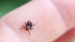Tick - infectious insect on the skin of a child. Wood tick. Lyme disease