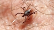 "A female blacklegged, or deer tick, (Ixodes scapularis), about the size of a sesame seed, stumbling its way through hairs on human skin. These ticks are responsible for the transmission of Lyme disease, the most common tick-borne disease in the northern hemisphere and which can be deadly if not properly treated. This tick might, in fact, be infected, but the scientist volunteering his arm has little to fear as the the tick must be attached for at least 24 hours before it can transmit the bacteria responsible for the disease. Blacklegged ticks have saw-like mouthparts with dozens of barbs which make the ticks difficult to remove. Ticks belong to an order of arachnids and possess eight multi-segmented legs which are adapted for climbing and clinging."