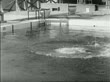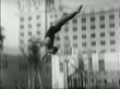 B/W 1927 tilt down diving champ Pete Desjardin doing dive off diving board / newsreel