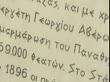 Tilt down on tributary marble plaque commemorating revival of the Olympic Games in 1896, Panathinaikon Stadium, Athens