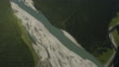 Tilt-down shot of the winding Arawhata River flowing in a wide valley - 4K stock video