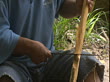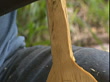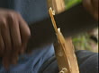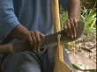 Tilt up as man shapes wooden canoe paddle with machete, Amazon Rainforest, Venezuela (Core Number: NBRA869S)