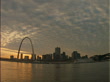 Time lapse day to night clouds over St Louis skyline / river in foreground - stock video