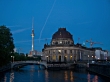 Time Lapse day night transition shot of the Bode Museum, in the background TV Tower on Alexanderplatz, both are landmarks of Berlin Germany.