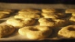 View into a baking oven with homemade cutout cookies during the baking process. Time lapse: first, the cookie dough is raising and then slowly browning during baking off.