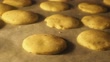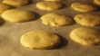 View into a baking oven with homemade cutout cookies during the baking process. Time lapse: first, the cookie dough is raising and then slowly browning during baking off.