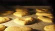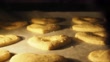 View into a baking oven with homemade cutout cookies during the baking process. Time lapse: first, the cookie dough is raising and then slowly browning during baking off.
