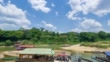 KUALA TAHAN, MALAYSIA - 23rd MAC 2019; 4K Time lapse of moving clouds over boat jetty on Tembeling river, Taman Negara National Park, Malaysia.