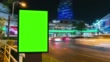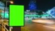 Time lapse, Traffic long exposure on road with Billboard green screen use for advertising street signs in city.