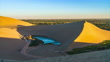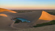 Timelapse of Crescent Lake with buddhist temple in desert, Dunhuang, Gansu China