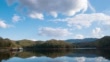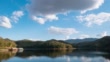 Timelapse of rolling clouds over mountain with the foreground Reservoir.