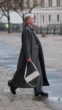 BERLIN, GERMANY - DECEMBER 5: (SLOW-MO) Tina Haase wears Nakdfashion tweed coat & tweed pants, Source unknown cropped white shirt & knit sweater, black men's tie, Billi Bi Cph platform loafer, Loewe golden pin, Jacquemus beige Ciuciu handbag on December 5, 2022 in Berlin, Germany. (Footage by Christian Vierig/Getty Images)