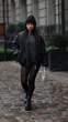 BERLIN, GERMANY - NOVEMBER 27: (SLOW-MO) TingTing Lai wears a WRSTBHVR bomber jacket, tights, a white Prada bag, a black beanie and laced boots on November 27, 2023 in Berlin, Germany. (Footage by Christian Vierig/Getty Images)
