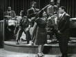 Tiny Grimes and adult African American male band members performing "Romance Without Finance (Is A Nuisance)" in a bar-scene set; adult African American man clapping his hands, moving to the beat. Tiny Grimes playing electric guitar. Adult African American male and female couple seated at bar enjoying the music; adult African American male bartender pouring woman a drink. Tiny Grimes playing guitar. Man whispering to adult woman, Tiny Grimes and band playing BG. Adult African American female singer performing. Tiny Grimes and band playing, adult African American man dancing; female singer stands nearby, watching. Adult African-American couple sitting at bar, enjoying the song; bartender pours a drink. Tiny Grimes playing guitar, smiling. Female singer dances briefly with man.