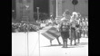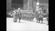 Title superimposed on marching Swiss Guards: "Vatican - Swiss Guard Observes 450th Year of Founding" / A group of uniformed men walking forward; they wear metal armor, feathered helmets, breastplates, and carry pikes; one beats a drum / A crowd of people watch the procession with a large fountain behind them / A line of men and a drummer follow Lieutenant Colonel Ulrich Ruppen / People crouch and take pictures / new members are inducted: the men stand in a row with the guards' flag; they're reviewed by a Chaplain of the Guards wearing cleric robes / a group of people in sunlight / VS a row of the men step forward and salute / one of the guards briskly walks forward, take the outstretched flag / one guard grabs the flag pole and raises his hand / CU look at a gloved hand with three fingers held up / VS a different man performs the same ritual; CU his face / more guards, with people watching them / VS the men march past, three abreast and three by three with a wider view of them in the courtyard / Note: exact day not known