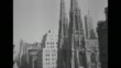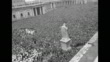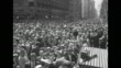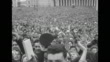 Title "The light of faith" superimposed over Mirror Lake in Yosemite National Park in US / WS tall rock formation in park / two wide shots of waterfall and mountains in Park / two shots people gathered for service on shore of Mirror Lake / people gathered for service near shore / clergyman conducting service standing on shore next to cross / people gathered on shore for service / "Hollywood Bowl" superimposed over wide shot of crowd gathered for service in Bowl / crowd in Bowl / sun coming up over hill / two wide shots of crowd in Bowl // "Rome" superimposed over crowd gathered in St Peter's Square / bells ringing / statues on rooftop of colonnade around Square / WS Pope Pius XII on balcony overlooking Square, crowd in foreground waving and cheering / closer shot of Pius XII / three shots of crowd cheering / Pius XII speaking / three shots of crowd listening / Pius XII speaking / overhead shot of row of Italian soldiers standing around open area, crowd behind them / soldiers kneeling for Pope's blessing / Pius XII giving blessing / overhead shot of soldiers and crowd behind them / closer shot of crowd kneeling for blessing / crowd rising to its feet and cheering / crowd cheering and waving // "New York" superimposed over crowd on Fifth Avenue / shot from below of St Thomas Episcopal Church / tilt down front of Church to people entering / two overhead shots of people inside Church attending service / tilt down St Patrick's Cathedral to crowd gathered outside on street / people entering Cathedral / people inside Cathedral attending Mass / Cardinal Francis Spellman, Archbishop of New York, on altar saying Mass with other clergymen / WS shot of Spellman and others on altar / crowd outside, people leaving Cathedral in background / two shots of crowd on Fifth Avenue