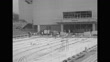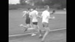 Title "Vancouver set for Canada's 'Olympics'" superimposed over athletes doing calisthenics / plane taxiing towards camera at airport / two shots of athletes coming down steps from plane / plane taxiing / athletes coming down steps from plane / CU jacket athlete is wearing with words "Rhodesia Boxing" on pocket / CU jacket athlete is wearing with words "Empire & Commonwealth Games, Vancouver 1954, South Africa" on pocket / CU jacket athlete is wearing with words "British Empire and Commonwealth Games 1954, Canada" on pocket / close shot of female athlete posing for photo opportunity / row of five athletes from British Guyana (now Guyana) with their arms on each other's shoulders posing for photo opportunity / group of athletes from Jamaica posing for photo opportunity / CU jacket athlete is wearing with word "Jamaica" on pocket / shot of swimming pool / swimmers diving off boxes on edge of pool to start race / close shot from behind of sweatshirt athlete is wearing that says "Australia" on its back / row of five Australian female athletes running in place / female athlete throwing discus / Australian sprinter Marjorie Jackson Nelson and another female sprinter come out of starting blocks and run past camera / close shot of Nelson posing for photo opportunity / two shots of athlete from Kenya throwing javelin / New Zealand runner Murray Halberg on left running with two other runners / close shot of Halberg posing for photo opportunity / four Australian runners standing in row at airport posing for photo opportunity, runner John Landry at far right / close shot of Landry / Landry walking away from airport terminal / Note: exact day not known