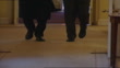 Tony Blair and Francesco Rutelli; ENGLAND: London: Downing Street:INTBV Tony Blair MP (PM) walks along corridor to front door / Blair & Francesco Rutelli (Leader Italian Centre Left Coalition) walk towards along corridor / Blair & Rutelli stand & shake hands for press & awayD0513632 OR B0192479/R30010101