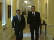 Tony Blair sets out a case for war; ITN ENGLAND: London: Downing Street: EXT King Abdullah of Jordan along to door of Number 10 as greeted by Prime Minister Tony Blair MP ZOOM IN INT Blair towards with King Abdullah PAN as they shake for photocall EXT Joschka Fischer (German Foreign Minister) along