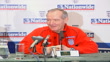 Tord Grip (assistant football manager) speaking at press conference (part only)