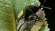 Tortoise beetle (family Chrysomelidae) on a leaf in the rainforest, Ecuador - HD stock video