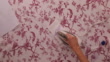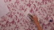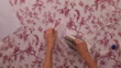 Touching and spilled candle wax in a flowered tablecloth removing wax with ironing paper towel - 4K stock video
