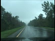 Track forward along debris strewn road in aftermath of Hurricane Frances, Florida; 5 Sep 2004