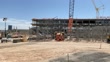 LAS VEGAS, NEVADA - APRIL 13: A track safety barrier is displayed in front of the Las Vegas Grand Prix paddock building before being signed by executives and placed atop the structure during a topping out event for the facility on April 13, 2023 in Las Vegas, Nevada. The Formula 1 Las Vegas Grand Prix inaugural race weekend is scheduled to take place November 16-18, 2023, with the race itself to begin on the night of November 18. (Footage by Ethan Miller/Getty Images)