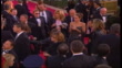 tracking MCU Jolie and Pitt zoom out to Pitt and Jolie pulled apart for photo ops zoom in to CU Jolie smiling and talking