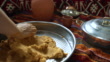 Woman is kneading stuffed meatballs like as çiğ köfte.