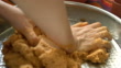 Woman is kneading stuffed meatballs like as çiğ köfte.