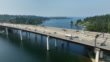 Traffic Moving Across I-90 East Channel Bridge in Washington State The bridge connects Mercer Island with Bellevue.