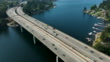 Traffic Moving Across I-90 East Channel Bridge in Washington State The bridge connects Mercer Island with Bellevue.