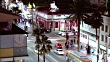 Traffic speeds through the intersection of Hollywood Boulevard and Highland Avenue in Los Angeles.