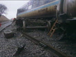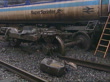 Cumbria: Train Crash; Raining lightlyENGLAND, Cumbria, Nr Kirkby Stephen TMS SIDE Two damaged BR trains at collision point PAN L-R carriages slewed across trackTBV BR investigator bending to inspect damageMS SIDE Bogies of Super Sprinter train off tracks as carriage body behindMS SIDE Ditto