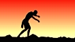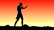 Man practicing punches on the sunset background