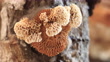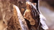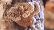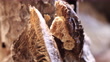 Trametes versicolor fungis on pine tree trunk from lateral view in macro shot. Time lapse video.Can you locate the pseudoscorpion in the clip?