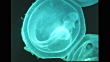 1969: MARINE REPRODUCTION: HD: TIME LAPSE Translucent fish eggs growing. VS Stages of egg development, developing embryos moving, fish taking shape, CU Embryo moving inside round egg. MACRO: VS Embryos feeding, faces moving, mouth opening, closing.
