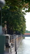 Tree details on the Adige river in Verona, vertical video of the river flowing along with historical architecture