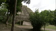Trees surround the remains of the Yaxha temple. Available in HD (Core Number: LAAY147H)