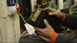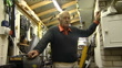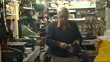Trevor Baylis interview and set-ups; Various set-ups of Trevor Baylis at work in his workshop - including discussing his wind-up radio (as holding radio) SOT