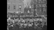 Troop review with hot air balloons / people in the reviewing stand / crowd watches as tanks and cannons ride by / jugglers and women in ethnic dress / Maria Jose and Humbert (Umberto) shake hands with people [Note: Film has nitrate deterioration]