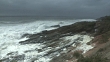 Tropical storm waves crash into the rocky coastline at Beavertail State Park in Jamestown, Rhode Island. - HD stock video