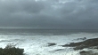 Tropical storm waves swell in the ocean near Beavertail State Park in Jamestown, Rhode Island.