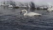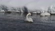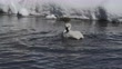 Trumpeter Swan bathing on a cold windy 3 degrees below zero day. - 4K stock video