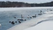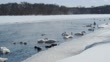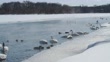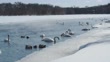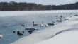 Trumpeter Swans swimming in a creek on a cold winters day. - 4K stock video