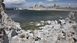 Tufa formations rise as high as 10 meters along the shore of Mono Lake in California. Tufa towers form under water during a chemical reaction when when the calcium in underground springs mix with carbonates in the lake water. Tufa is visible today because of the low lake level brought about by water diversions begun in 1941 meant to slake the thirst of a growing Los Angeles four hundred kilometers to the south. Mono Lake is a saline lake approximately 21 km long with a maximum depth of 48 meters.