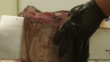 Steady shot of a butcher cutting chunks of albacore tuna, also known as longfin tuna, at a tuna processing plant in Catania, Sicily, Italy.