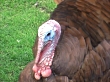 Free roaming turkey on a farm. Handheld tracking and zooming in.